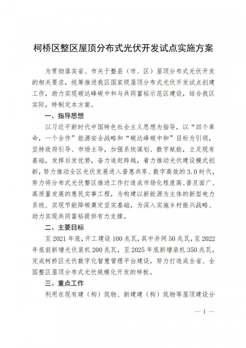 一、柯橋區(qū)整區(qū)屋頂分布式光伏開發(fā)試點實施方案