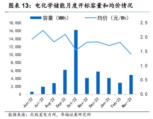 華福證券數據顯示,當月電化學儲能項目中標均價僅為1.41元/kWh,同比下降22.53%,其中儲能系統設備中標均價僅為1.23元/Wh。