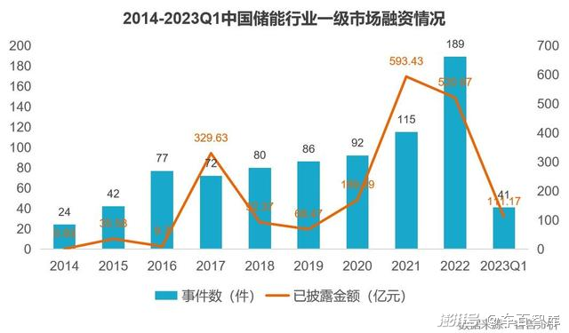 在投融資上,儲能行業也成為一級市場投資新熱點,其熱度持續高漲,尤其是2022年,儲能融資處于爆發期。據睿獸分析統計,2022年,我國儲能行業融資事件189件,同比增長64.3%,融資金額520.97億元,也處于高位。