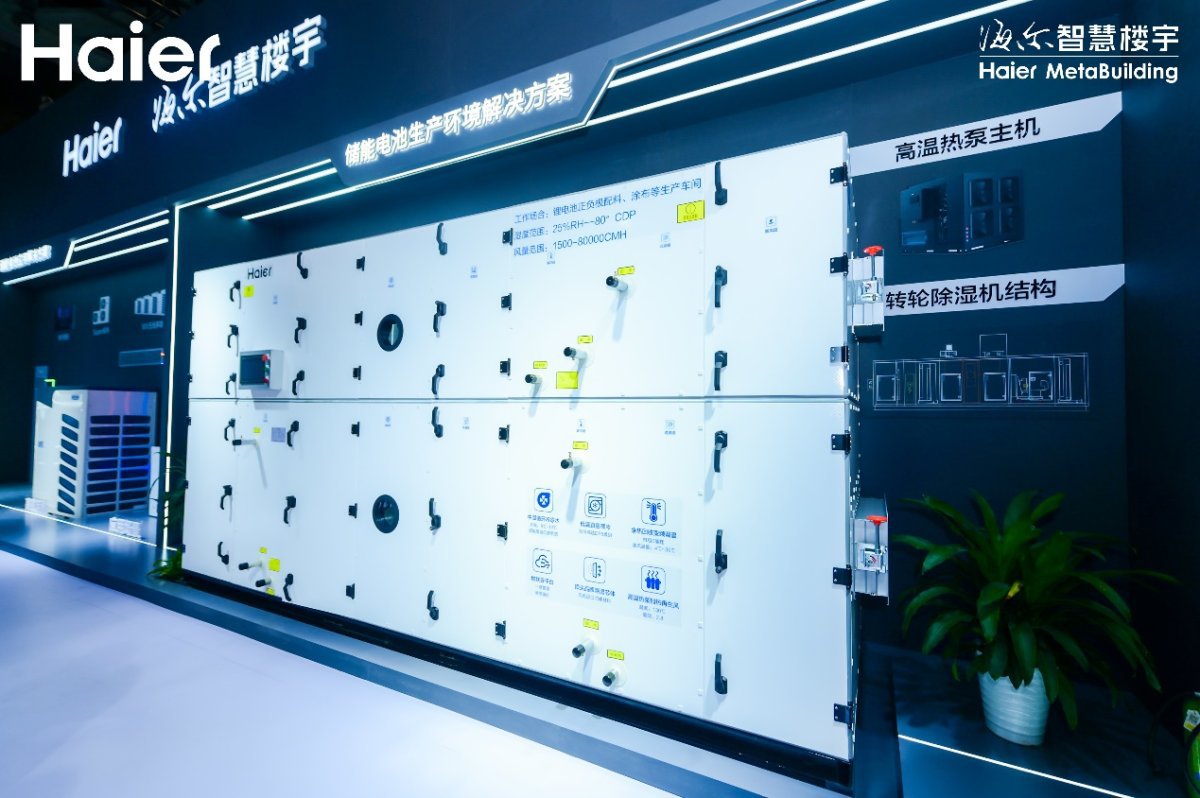 展會現場,海爾智慧樓宇儲能溫控產品設計總監王軍分享了其儲能全產業鏈解決方案,屬行業首例。具體來看,在儲能電池生產場景中,推出轉輪除濕+高溫熱泵再生的一體式熱回收集成方案,達到-40℃到-80℃的露點溫度,保障安全的生產環境。此外,該方案中應用的熱泵技術更加節能環保,實現系統節能50%,也降低了企業運行成本。