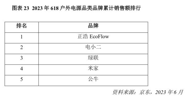 根據10月23日高工產研儲能研究所最新發布的《2023H1全球便攜式儲能(戶外電源)排名》榜單,目前全球便攜式儲能市場銷售額前五的企業分別為正浩創新、華寶新能、德蘭明海、Goal Zero和安克創新。除頭部四家中國企業外,市場參與者還包括綠聯、小米、公牛、移族、長芽、倍思、羅馬仕等。