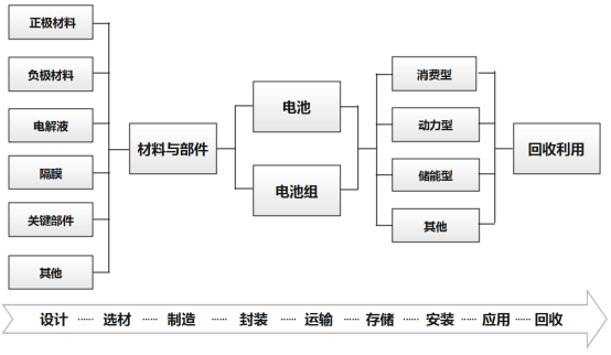 圖1 鋰離子電池產(chǎn)業(yè)鏈和生命周期