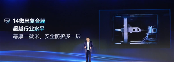 在安全防護方面,億緯鋰能也有多重創新設計,首先在電池隔膜方面選擇了14微米復合膜,超越行業水平。與此同時,億緯還開發了具有熱關斷的效應的特殊隔膜涂層,當溫度達到臨界值,涂層顆粒會融化關斷鋰離子的遷移,從源頭阻斷電芯熱失控的發生。