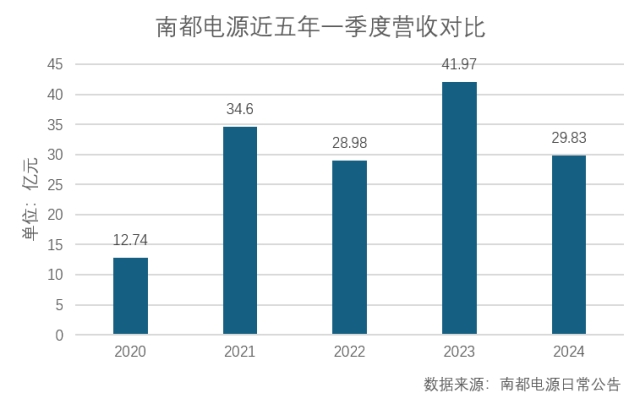 作為全球儲能系統出貨量頭部企業之一,南都電源于2024年4月24日正式發布第一季度業績公告,公告顯示,2024年第一季度營收約29.83億元,同比減少28.93%。歸屬上市公司股東凈利潤約8259萬元,同比減少18.34%,營業收入及凈利潤雙下降!