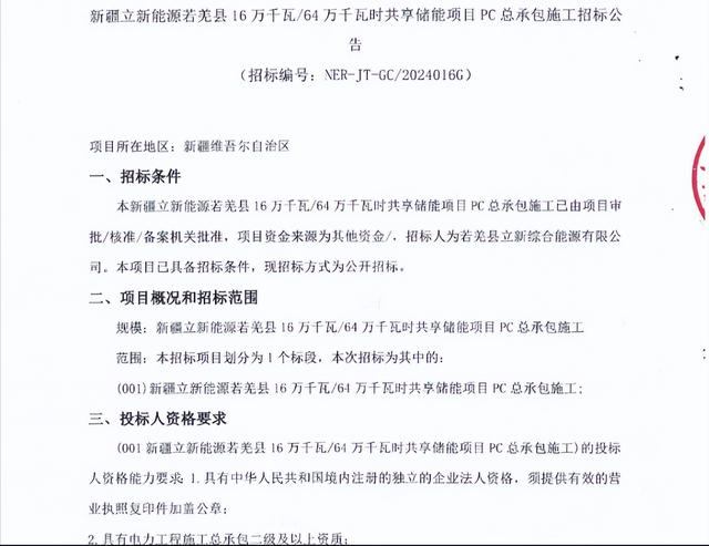 新疆立新能源公司近日正式發布了招標公告,標志著若羌縣即將啟動一項重要的新能源項目——160MW/640MWh共享儲能項目。該項目旨在推動當地新能源產業的快速發展,構建清潔、低碳、高效的能源體系。