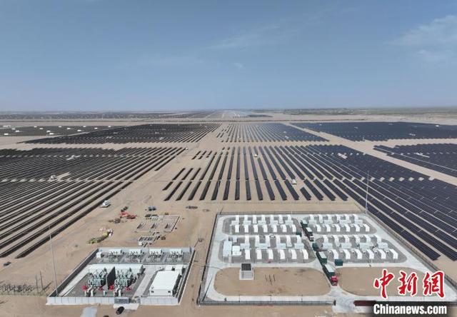 6月18日,航拍位于青海省海西蒙古族藏族自治州格爾木市的全球首個50兆瓦/100兆瓦時智能組串式構網型儲能電站。全球首個50兆瓦/100兆瓦時智能組串式構網型儲能電站——青海格爾木魯能彌盛儲能電站于近期正式投運。據了解,構網型儲能電站相比傳統新能源場站內的儲能,能夠發揮對電壓和頻率的主動支撐能力,在弱電網環境下更能發揮儲能在電力系統中的作用,實現更大范圍的調峰調頻作用,具有更高利用率。(無人機照片)中新社記者 馬銘言 攝