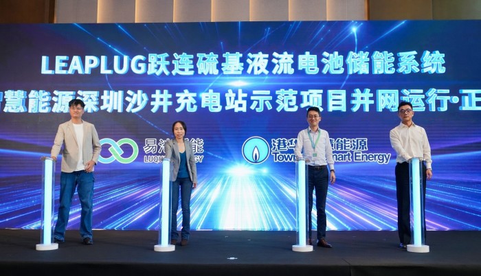 7月29日,香港中華煤氣子公司港華智慧能源與易池新能(Luquos Energy)合作的首個應用硫基液流電池儲能系統(tǒng)的充電站配儲示范項目正式啟動并網(wǎng)運行。同時,易池新能正式發(fā)布LEAPLUG 躍連硫基液流電池儲能系統(tǒng),該系統(tǒng)也是首個用于示范項目的硫基液流電池儲能系統(tǒng)。