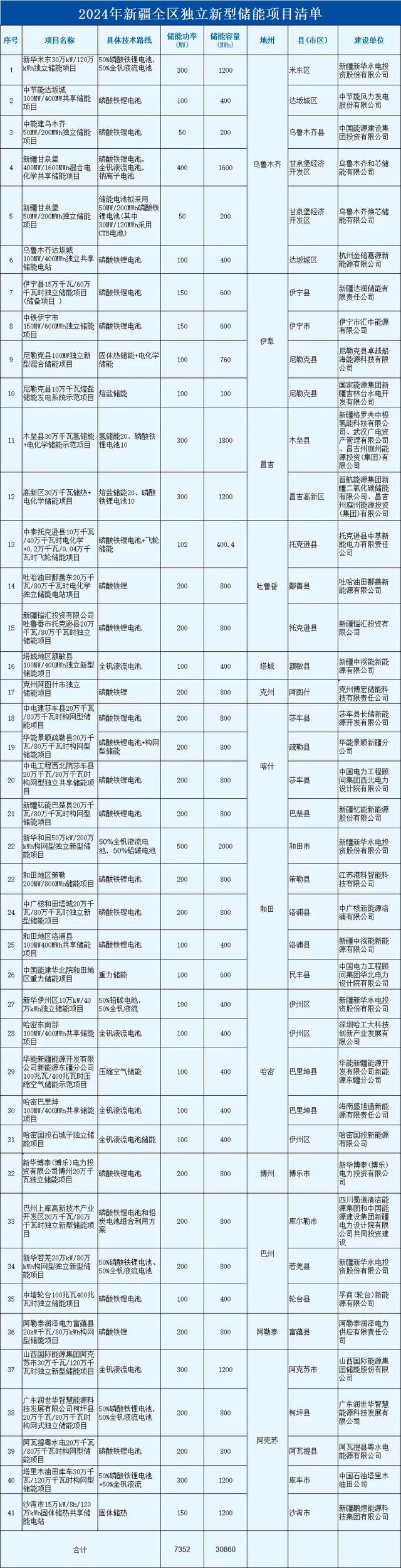 近日,新疆發改委、國網新疆電力公司聯合印發《關于做好2024年全區獨立新型儲能項目布局及相關工作的通知》,公布了新疆2024年全區獨立新型儲能項目清單。