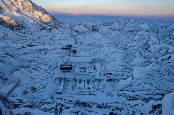 隆冬臘月,筆者懷揣著深深的敬意,踏上探訪玉門抽水蓄能電站建設者的西北之旅。飛機降落在嘉峪關后,換乘車輛,一路顛簸三個多小時,穿越繁華都市,漸入戈壁荒漠。今年,這里已迎來六場瑞雪,皚皚白雪如同厚重的絨毯,給大地披上了銀裝素裹,不少地方積雪厚度足有五六十公分。