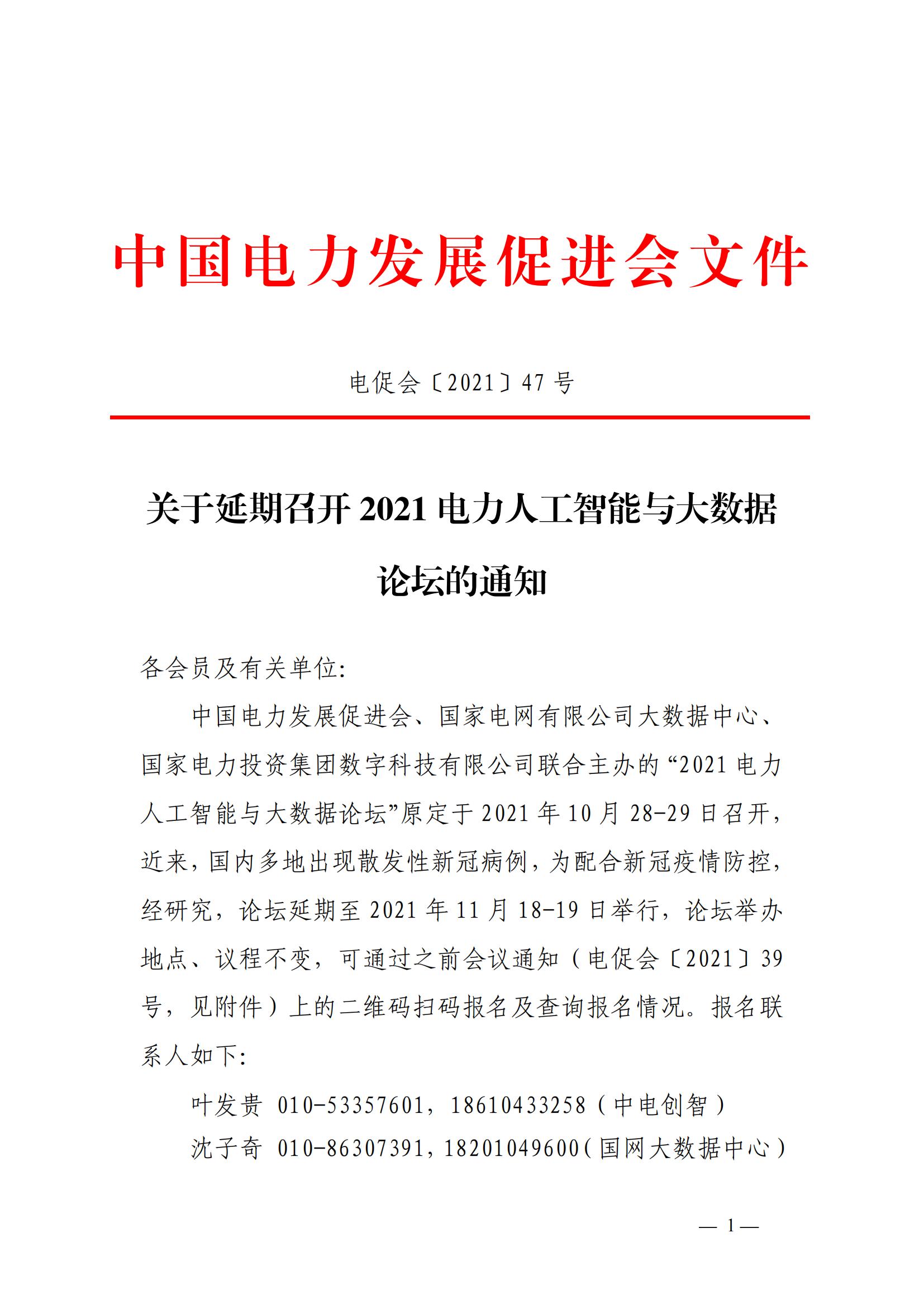 關(guān)于延期召開(kāi)2021電力人工智能與大數(shù)據(jù)論壇的通知