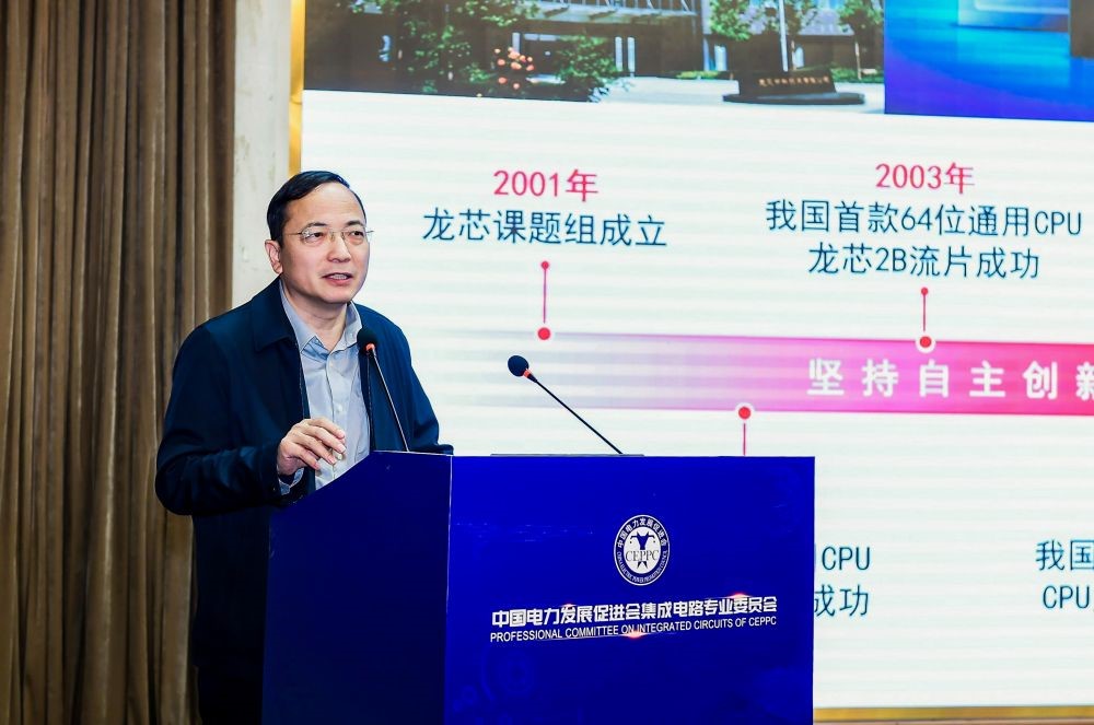報告環節,清華大學電機工程與應用電子技術系黨委副書記、教授鄭澤東做題為《碳化硅功率器件與應用:從芯片到變換器》主旨報告;華北電力大學電氣與電子工程學院副院長、教授劉念做題為《融合能新能源與儲能的協調優化調控關鍵技術及芯片化思考》主旨報告;電促會集成電路專委會會長邱宇峰做題為《電力工業芯片產業發展探索與思考》主旨報告;電促會集成電路專委會常務副會長、北京智芯微電子科技有限公司副總工程師王連忠、龍芯中科技術股份有限公司嵌入式事業部副總經理明旭分別做《集成電路支撐能源電力數字化轉型升級》《自主芯架構連接新未來》主題演講。