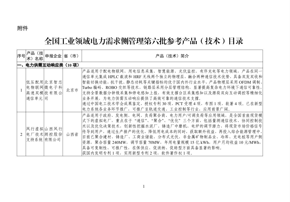 附件:全國工業(yè)領域電力需求側(cè)管理第六批參考產(chǎn)品(技術)目錄