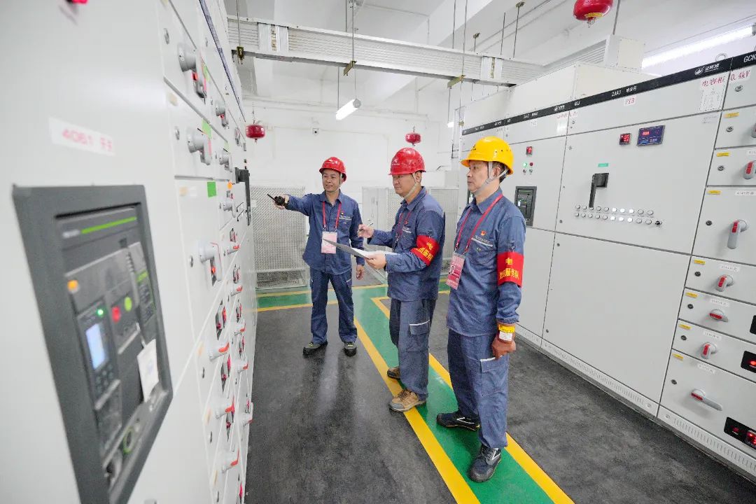 ▲南方電網廣東汕頭龍湖供電局保供電工作人員在賽時對電鴻化模塊及相關電力設備進行檢查。(吳子琳 攝)