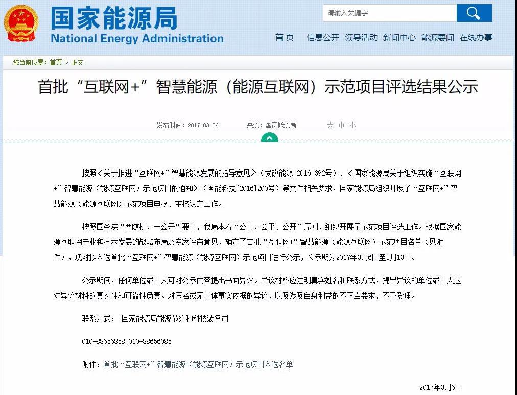 “廈門火炬開發區‘一區多園’‘互聯網+’智慧能源+智能制造產業融合試點示范”項目屬于國家能源局首批“互聯網+”智慧能源(能源互聯網)示范項目之一,項目牽頭單位為廈門國家火炬高技術產業開發區管理委員會,項目于2017年3月6日在國家能源局網站公示。