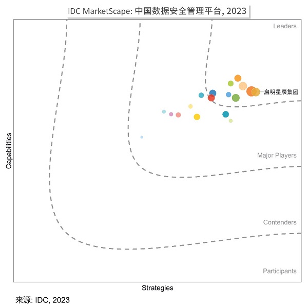 近日,IDC發布了《IDC MarketScape : 中國數據安全基礎設施管理平臺2023,廠商評估》報告。啟明星辰集團位列領導者陣營,在現有能力、未來戰略和市場表現三大維度占據顯著優勢,領航中國數據安全管理平臺市場。