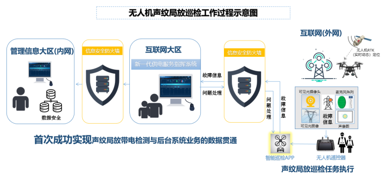 近日,博電新能與國網冀北電力有限公司開展互作,通過無人機掛載聲紋局放檢測設備,對相關配網線路進行聲紋局放帶電檢測,并借助聲紋巡檢APP將檢測實時現場畫面及巡檢缺陷數據上傳至供電服務指揮系統,首次成功實現了聲紋局放帶電檢測與后臺系統業務的數據貫通。該技術融合“空、天、地、人”多組合狀態檢測手段,高度賦能電力系統狀態檢測及人工智能規模應用,其廣泛應用將有效助力電網數智化轉型。