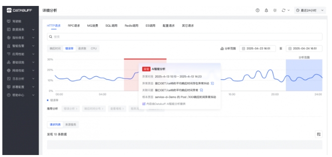 DataBuff 新核心業(yè)務(wù)觀測(cè)與故障定位解決方案主要包括三個(gè)方面的功能:基于業(yè)務(wù)觀測(cè)的用戶旅程分析、基于因果AI的故障定位能力、基于生成式AI的運(yùn)維自動(dòng)化能力,以下展開(kāi)詳細(xì)說(shuō)明:
