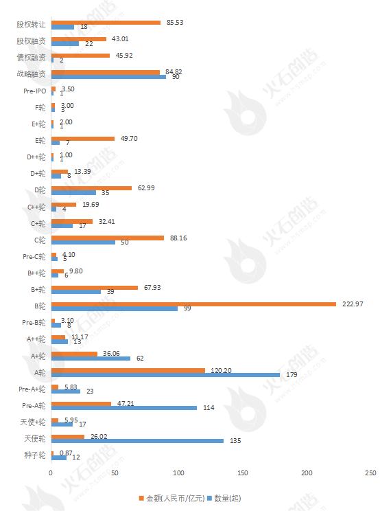 圖2:2022年各輪次融資數量及金額 來源:火石創造產業數據中心