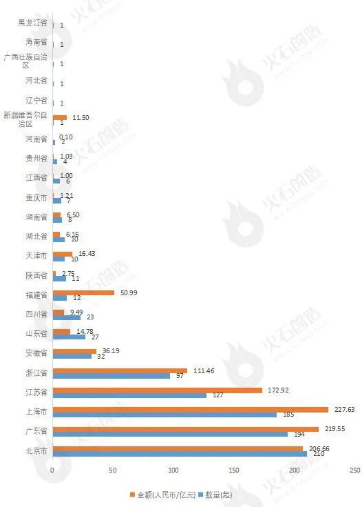 圖3:2022年各地區融資數量及金額 來源:火石創造產業數據中心