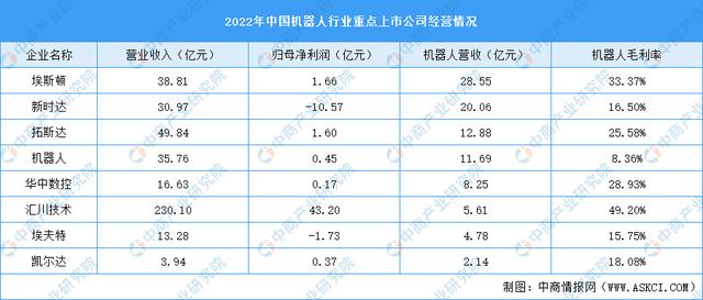 工業機器人行業重點上市公司經營情況對比分析