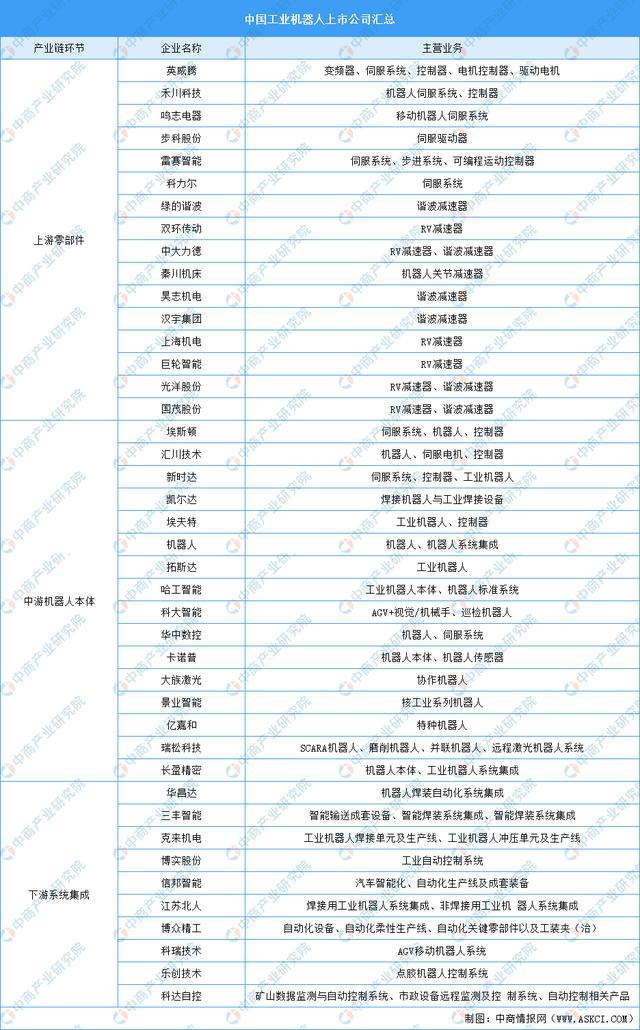 工業機器人產業鏈環節上市公司匯總