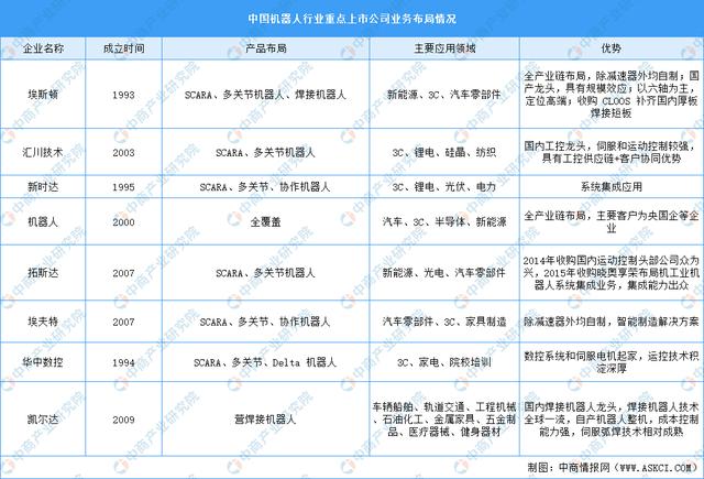 工業機器人行業重點上市公司業務布局