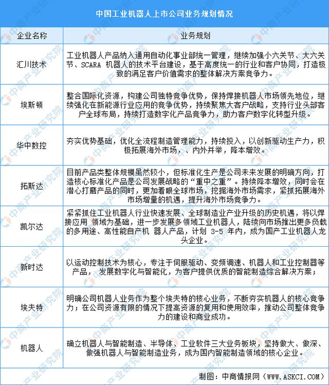 工業機器人行業重點上市公司業務規劃對比
