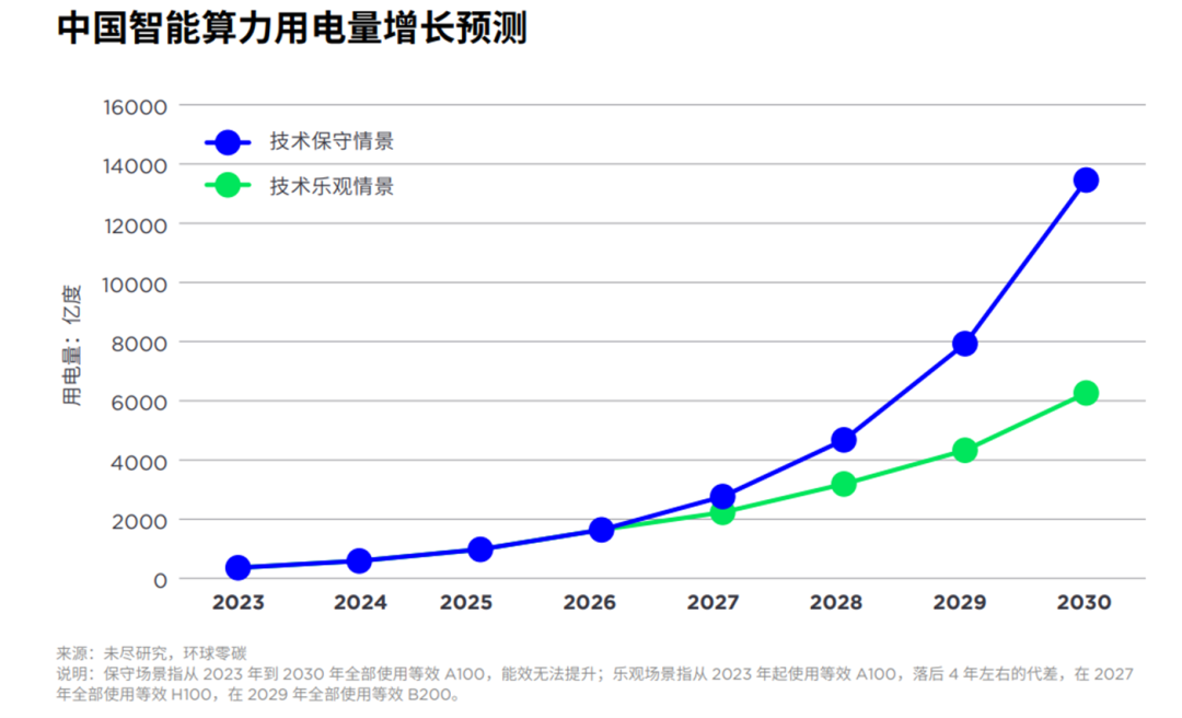 2030年中國智算年用電最高1.3萬億度