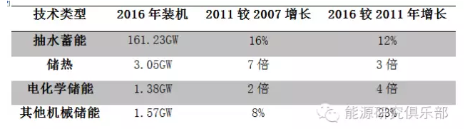 以2011年為分界點,前5年儲熱裝機增速最快,較2007年增加7倍,后5年化學儲能則成為發展最快的技術,詳見表3。