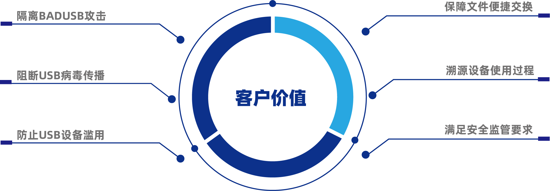 USB安全管理系統(tǒng)通過用戶身份可信、U盤授信、文件傳輸可信三重管控機制,同時支持完整的審計操作記錄、嚴格的授權(quán)操作和安全可靠的病毒防護措施,實現(xiàn)三重安全防護,確保用戶業(yè)務(wù)系統(tǒng)的安全性。