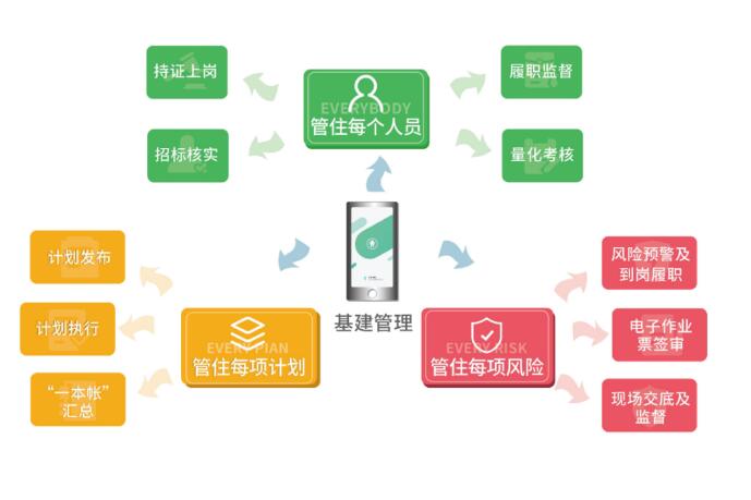 基建“e安全”綜合應用物聯網和移動互聯網等技術,通過現場人員實名制管理、關鍵環節在線管控、作業現場分級監控、違章行為智能預警等功能,實現“管住每一位人員、管住每一項計劃、管住每一項風險”的管控目標,抓住關鍵點、關鍵人,抓實現場兩級管控,開啟基建安全精細化管控新模式,為疫情防控期間工程安全復工提供有力支撐。