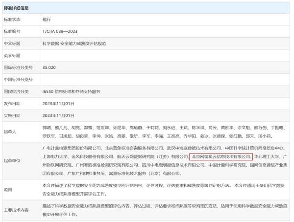 本網(wǎng)訊 2023年11月1日,中國(guó)信息協(xié)會(huì)發(fā)布《科學(xué)數(shù)據(jù)安全能力成熟度評(píng)估規(guī)范》團(tuán)體標(biāo)準(zhǔn),并于11月1日起開(kāi)始實(shí)施。網(wǎng)御星云作為主筆單位深度參與標(biāo)準(zhǔn)的編制,牽頭標(biāo)準(zhǔn)起草、修訂等一系列工作。