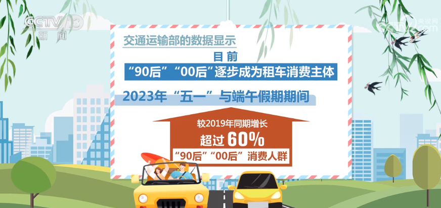 交通運輸部的數據顯示,目前“90后”“00后”逐步成為租車消費主體,今年“五一”與端午假期期間,“90后”“00后”消費人群較2019年同期增長超過60%,在全部消費群體中占比過半。新能源汽車,設計年輕化、時尚化,契合了年輕人這一主力消費群體的消費習慣。相關統計顯示,截至目前,國內新能源車輛租賃訂單2023年比2022年同期上漲了317%。