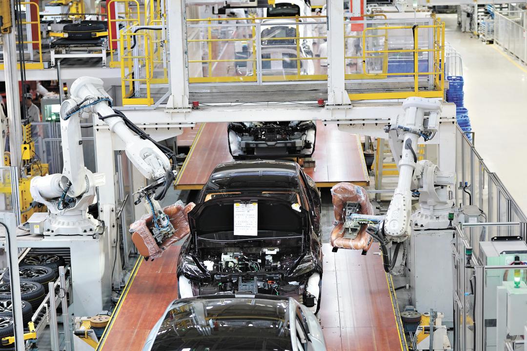 在總裝車(chē)間,汽車(chē)會(huì)經(jīng)歷200多個(gè)加工工位(站點(diǎn)),其中很多站點(diǎn)都實(shí)現(xiàn)了無(wú)人化、全機(jī)器人操作。
