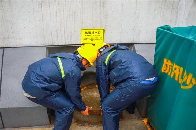 國網(wǎng)山東濟南供電公司員工加固110千伏廣場地下變電站防水擋板。