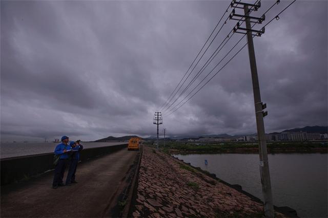 國網(wǎng)浙江溫州供電公司員工對浦亭社區(qū)山洪易發(fā)區(qū)供電設(shè)備開展防風(fēng)防汛特殊巡檢及清障工作。