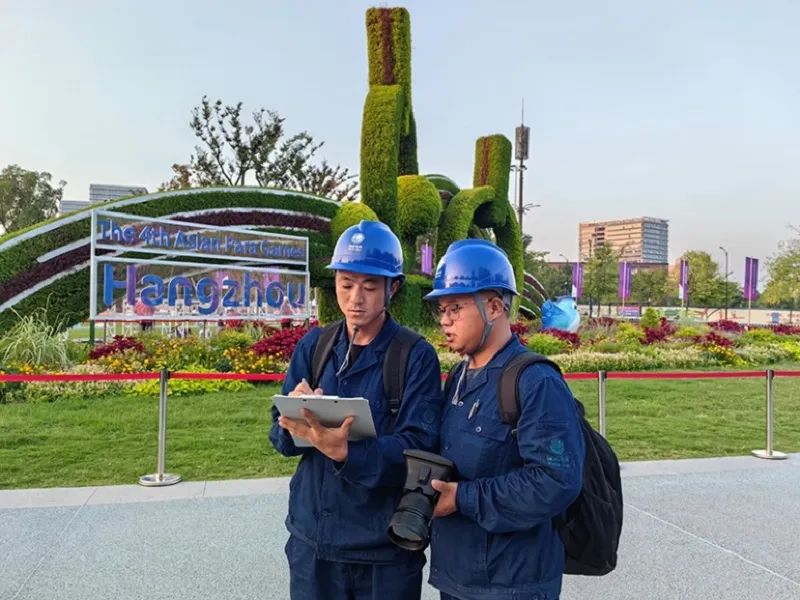 國網浙江杭州供電公司電力保障團隊隊員巡檢亞殘運會閉幕式場館用電設備