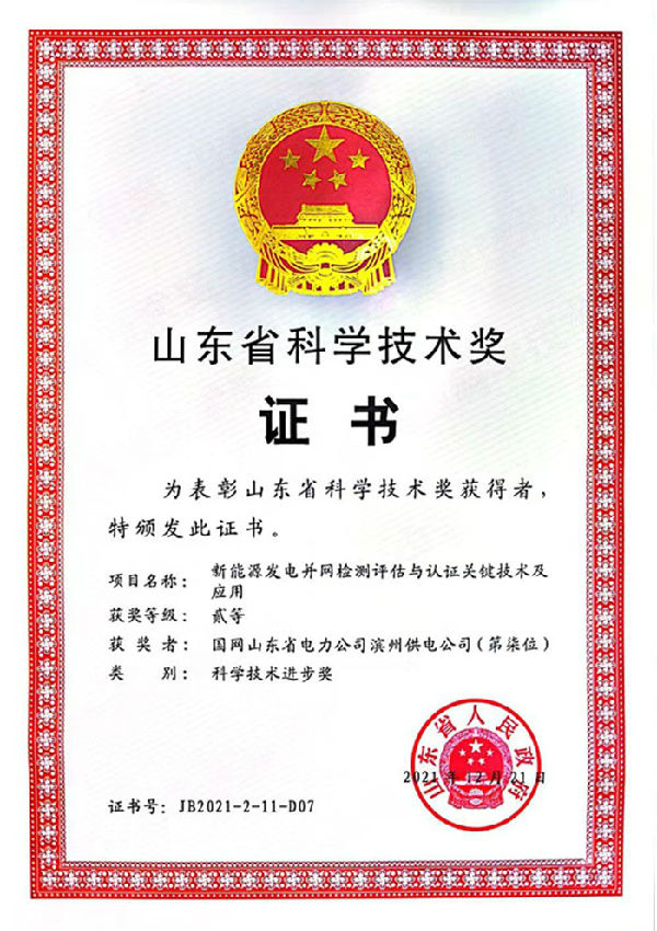 本網訊 7月1日,筆者從《山東省人民政府關于2021年度山東省科學技術獎勵的決定》上了解到,濱州公司參與申報的《新能源發電并網檢測評估與認證關鍵技術研究及應用》項目榮獲2021年度山東省科學技術獎科技進步二等獎。這是濱州公司首次獲得山東省科學技術獎。