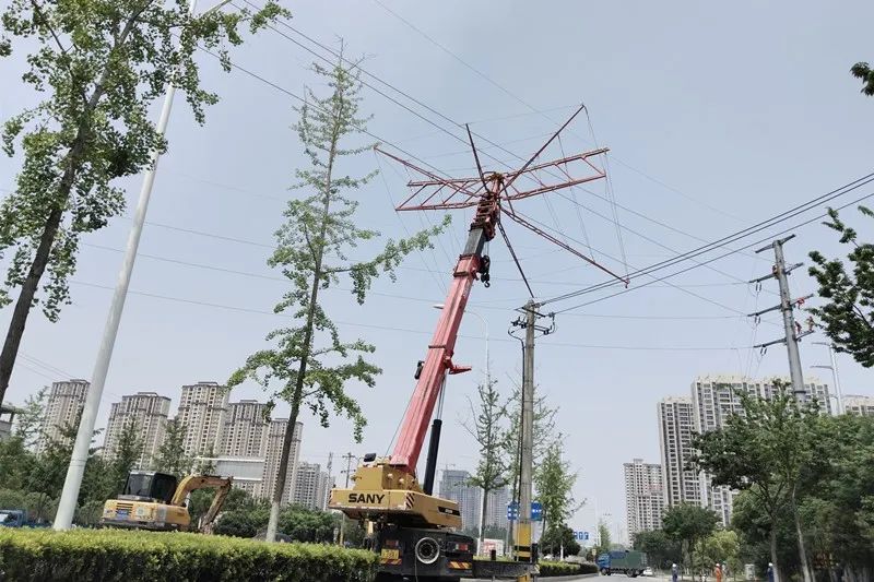 國網湖北鄂州供電公司在110千伏架空線路遷改工程中應用移動式傘形跨越架