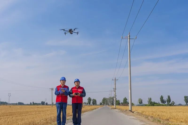 國網河北石家莊供電公司員工應用無人機巡檢配網線路