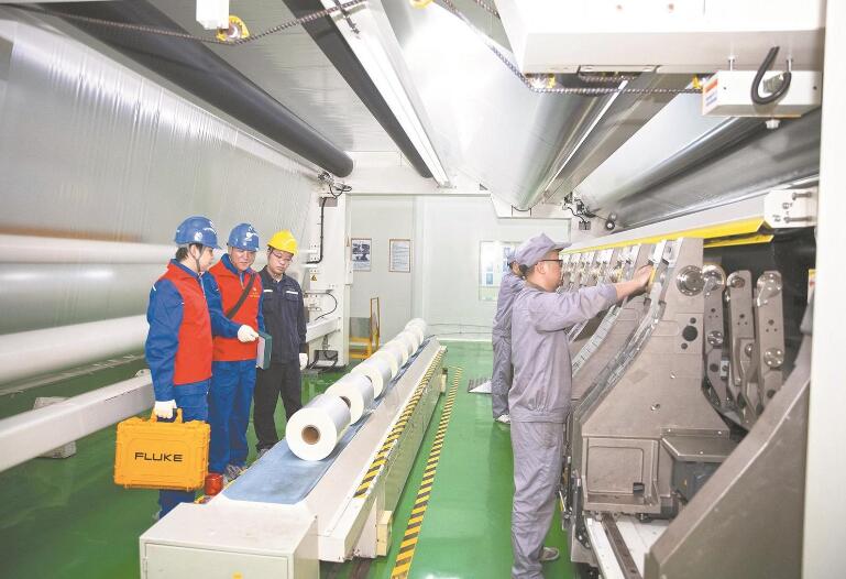 綿陽供電公司員工在四川東材科技集團股份有限公司為企業排查生產線用電安全隱患。田海 攝