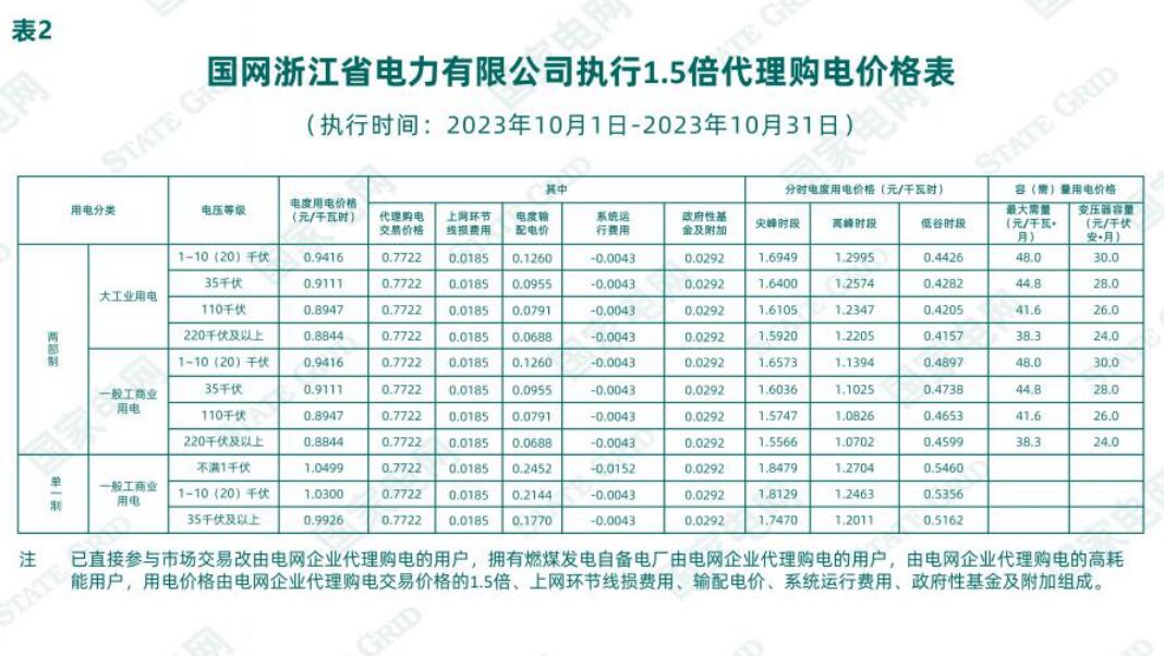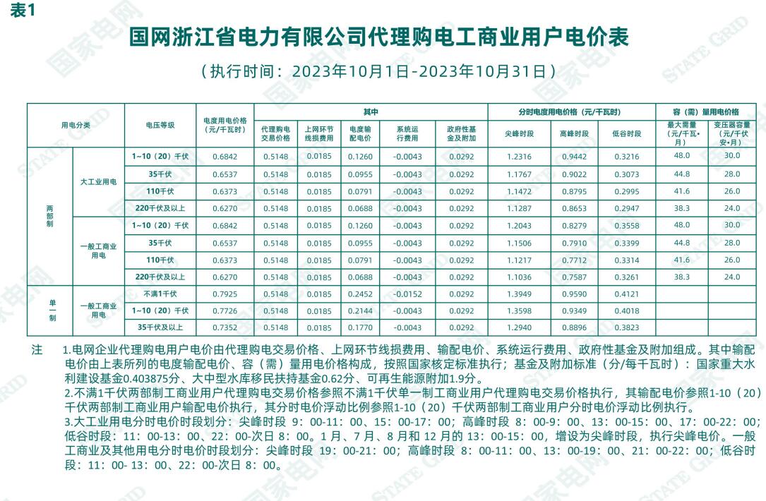 根據《國家發展改革委關于第三監管周期省級電網輸配電價及有關事項的通知》(發改價格〔2023〕526號)、《國家發展改革委辦公廳關于進一步做好電網企業代理購電工作的通知》(發改辦價格〔2022〕1047號)、《省發展改革委關于轉發<國家發展改革委關于第三監管周期省級電網輸配電價及有關事項的通知>的通知》(浙發改價格〔2023〕139號)、《省發展改革委關于轉發〈國家發展改革委辦公廳關于進一步做好電網企業代理購電工作的通知〉》(浙發改價格〔2023〕99號)、《省發展改革委關于轉發〈國家發展改革委辦公廳關于組織開展電網企業代理購電工作有關事項的通知〉的通知》(浙發改價格〔2021〕406號)、《2023年浙江省電力市場化交易方案》(浙發改能源〔2022〕302號)、《省發展改革委 浙江能源監管辦 省能源局關于做好2023年度浙江省電力市場化交易相關工作的通知》《國網浙江省電力有限公司關于報備代理購電價格預測機制的函》(浙電函〔2022〕169號),經報省發展改革委備案,我公司就2023年10月1日至2023年10月31日代理購電價格有關事項進行公示,詳見《國網浙江省電力有限公司關于2023年10月代理工商業用戶購電價格的公告》。
