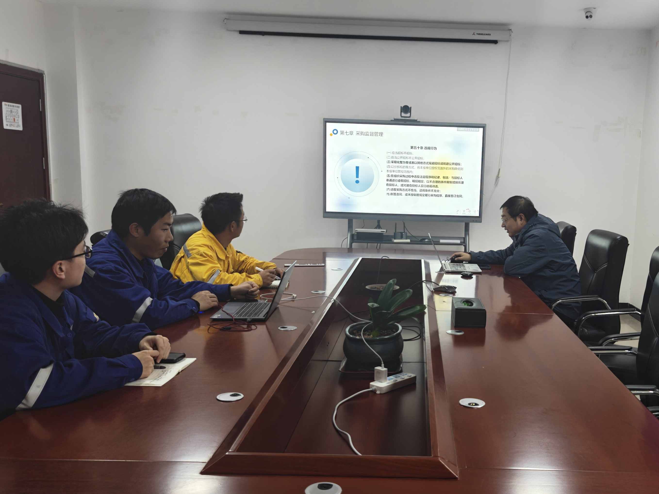 在制度宣貫環節,公司紀委委員程雪林從安全生產費使用、庫存物資出入庫、資產驗收注意事項等三個維度,對財務制度進行了解讀;公司商務人員針對招標采購領域存在的圍標串標風險,通過典型案例剖析,系統講解了《招標采購管理制度》中供應商資格審查、評標委員會組成、合同履約監管等關鍵環節的操作規范,以及招標采購過程中出現違規行為的后果等內容。