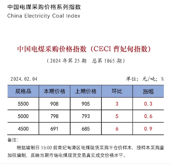中國(guó)電煤采購(gòu)價(jià)格指數(shù)(CECI曹妃甸指數(shù))第1065期