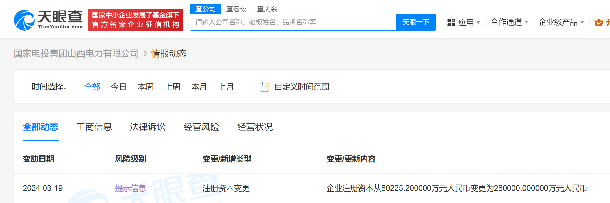 近日,國家電投集團山西電力有限公司發生工商變更,注冊資本由約8.02億人民幣增至28億人民幣。該公司成立于2017年7月,法定代表人為周棟,經營范圍含電力業務,電力供應,熱力的開發建設、經營、生產及管理等。股東信息顯示,該公司由中國電力國際發展有限公司全資持股。