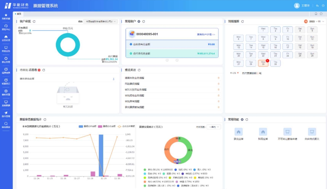 華能財務公司深入貫徹落實國務院國資委司庫建設及票據運營管理相關要求,作為集團授權的集團內唯一票據運營管理平臺,重點圍繞集團票據管理“可視、可控、可用”的總體目標,逐步構建形成集票據信息管理、票據集約化運作與票據業務風險防控為一體的“管視用一體化”票據系統,助力集團票據管理水平和票據使用效益雙提升。