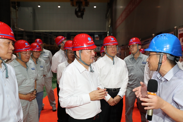 白鶴灘水電站是當今世界在建規模最大、技術難度最高的水電工程。郝鵬來到白鶴灘水電站,登上壩頂,俯瞰工程全貌,深入地下廠房左岸1號機組、右岸14號機組,看望慰問奮戰在一線的企業干部職工,與大家親切交流,詳細了解工程總體規劃、世界最大百萬千瓦水輪發電機組發電、庫區生態環境保護等情況。郝鵬指出,白鶴灘水電站是中央企業全產業鏈協同創新、自主創新的典型范例,由中國三峽集團牽頭,國家電網、東方電氣集團、哈電集團、中國電建、中國能建等積極參與,在水電工程的設計規劃、材料科學、裝備制造、施工技術、智能管理等領域實現了多項技術創新,創造了多個世界第一,令人鼓舞振奮、倍感自豪。要再接再厲、苦干實干,科學有序推進后續各項工作,高標準高質量打造精品工程,確保全部工程如期建成投產、安全穩定運行,為實施好“西電東送”國家重大工程,保障國家能源安全提供有力支撐。