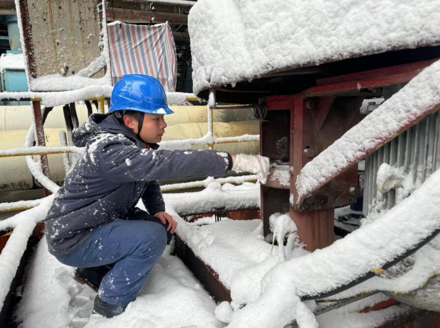 重慶公司聚焦燃料保供、設備運行等方面加大巡檢力度,增加巡檢頻率,對重點區域逐一檢查、對重要設備逐一排查、對覆冰情況逐一梳理,做到設備防寒防凍工作無死角、無遺漏。組織人員對設備、巡檢道路開展清雪工作,保障高山風電場設備安全運行及巡檢道路暢通無阻,夯實安全生產基礎。