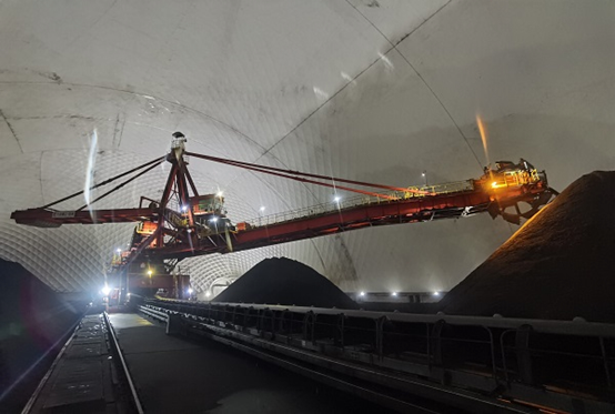 浙能樂清發電公司斗輪機通宵堆料提庫存。通訊員 孫超 攝