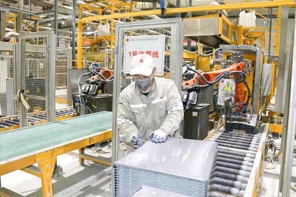 作為中國大唐的環保企業,大唐南京環保建有每年30000立方米平板式脫硝催化劑生產線和每年10000立方米脫硝催化劑再生生產線。一臺臺巨大的橘色“板件機器”像一只“大手臂”,不停抓取板件“奮力工作”,大唐南京環保自主可控的自動化產線、產品都源自這里。